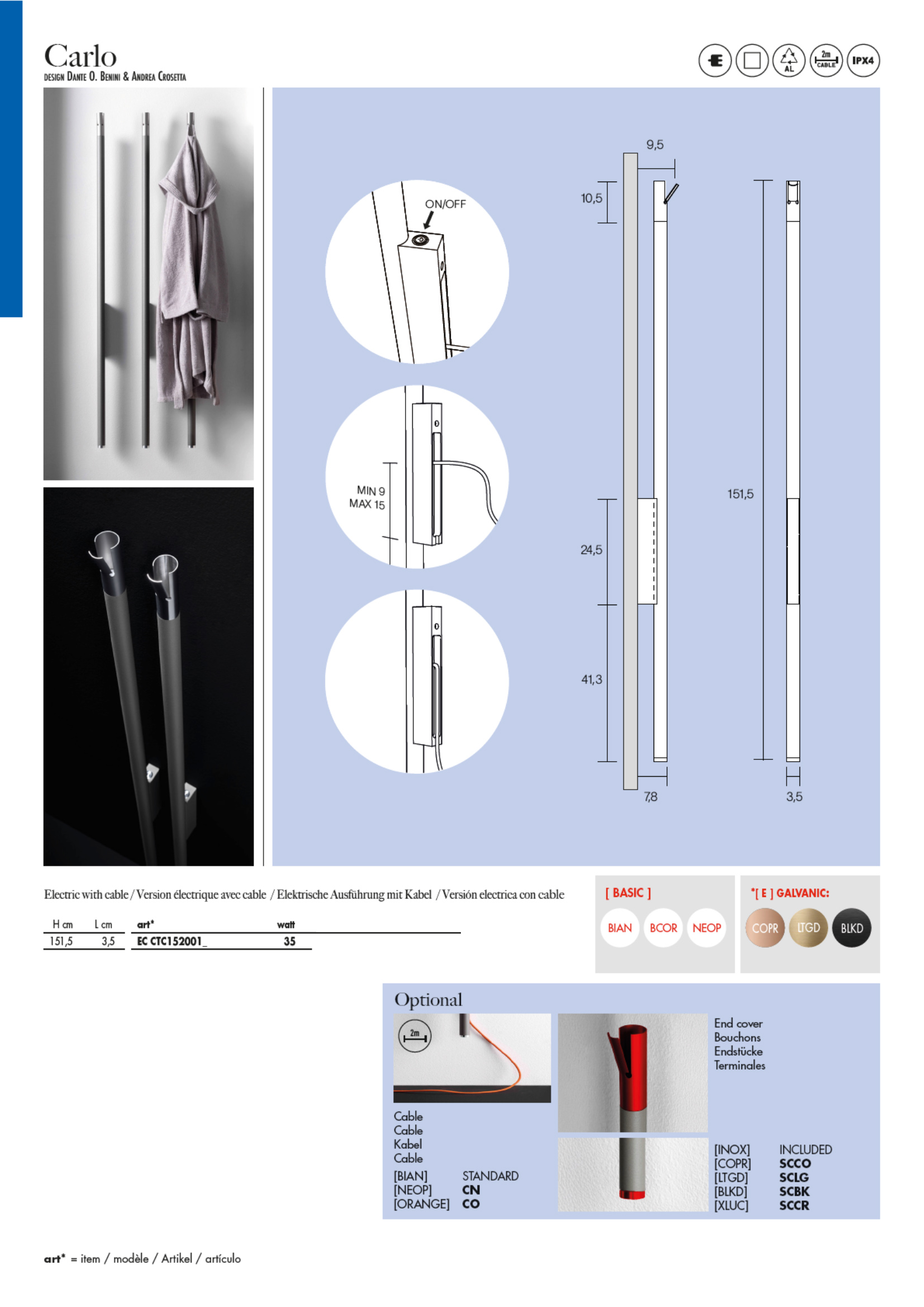 Antrax, Carlo Scaldasalviette elettrico L.151,5 cm