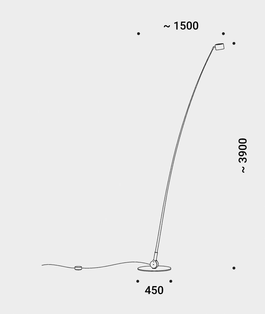 Lampada da terra in fibra di vetro e metallo, 220/240 V- 50/60 Hz, luce LED, cavo nero, orientabile in tutte le direzioni, dimmer lungo il cavo, colore Matt White.