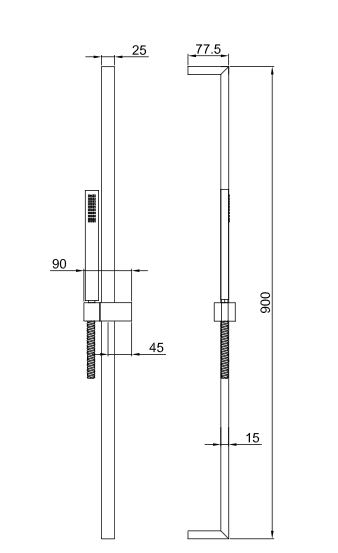 Asta doccia, senza presa acqua, con doccetta, flessibile PVC 150 cm, cursore orientabile, finitura cromo.
